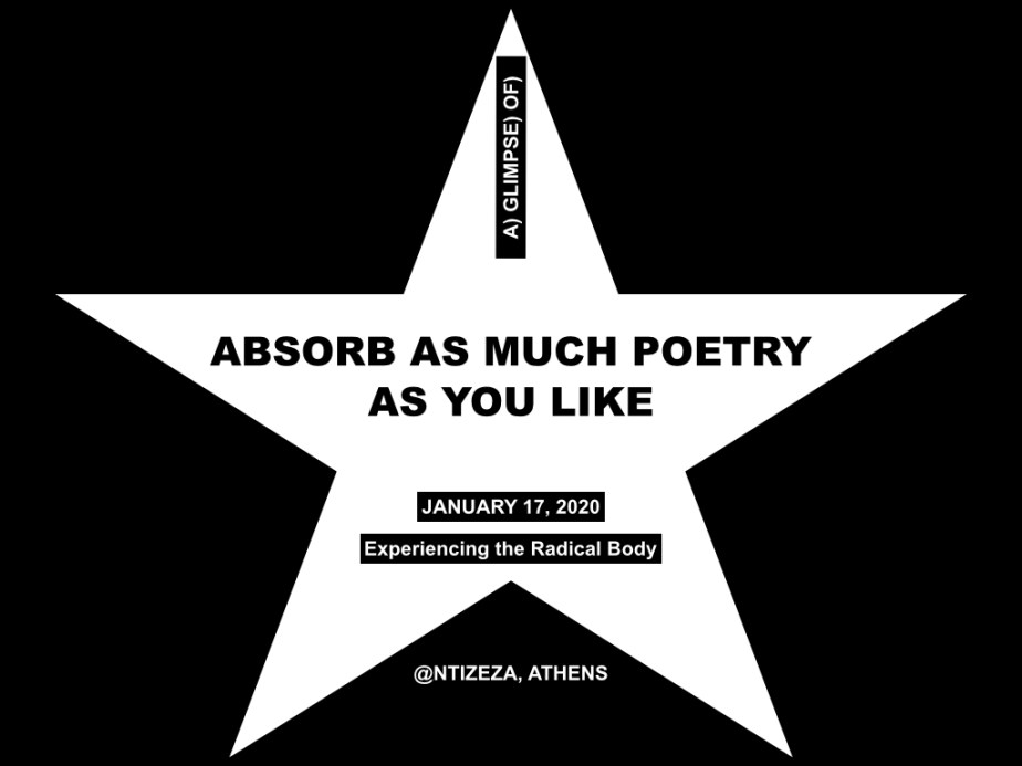 “It was a success!,” said to me the artist Sara True Art when we accidentally met at the laiki (farmers’ markets) the day after the preview event for the upcoming print issue “Experiencing The Radical Body.” And it really was. Feminists, artists, poetesses, and independent publishers, old and new friends of the journal came on January 17th 2020, at the project space NTIZEZA to celebrate a night of poetry. Thanks to everyone who came. Special thanks to Natasha, the driving force behind NTIZEZA, for being such a wonderful host.