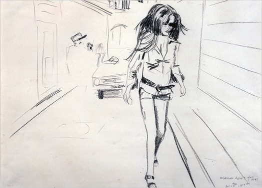 ΚΚ: Αν είχα προβλέψει ότι θα ξέπεφτες σε αντιδραστικά ζητήματα, δεν θα σε είχα σχεδιάσει να ψωνίζεις με σορτς – μια καταπληκτική φωτογραφία του 1974* την οποία μετέτρεψα ονειρικά σε τέχνη.